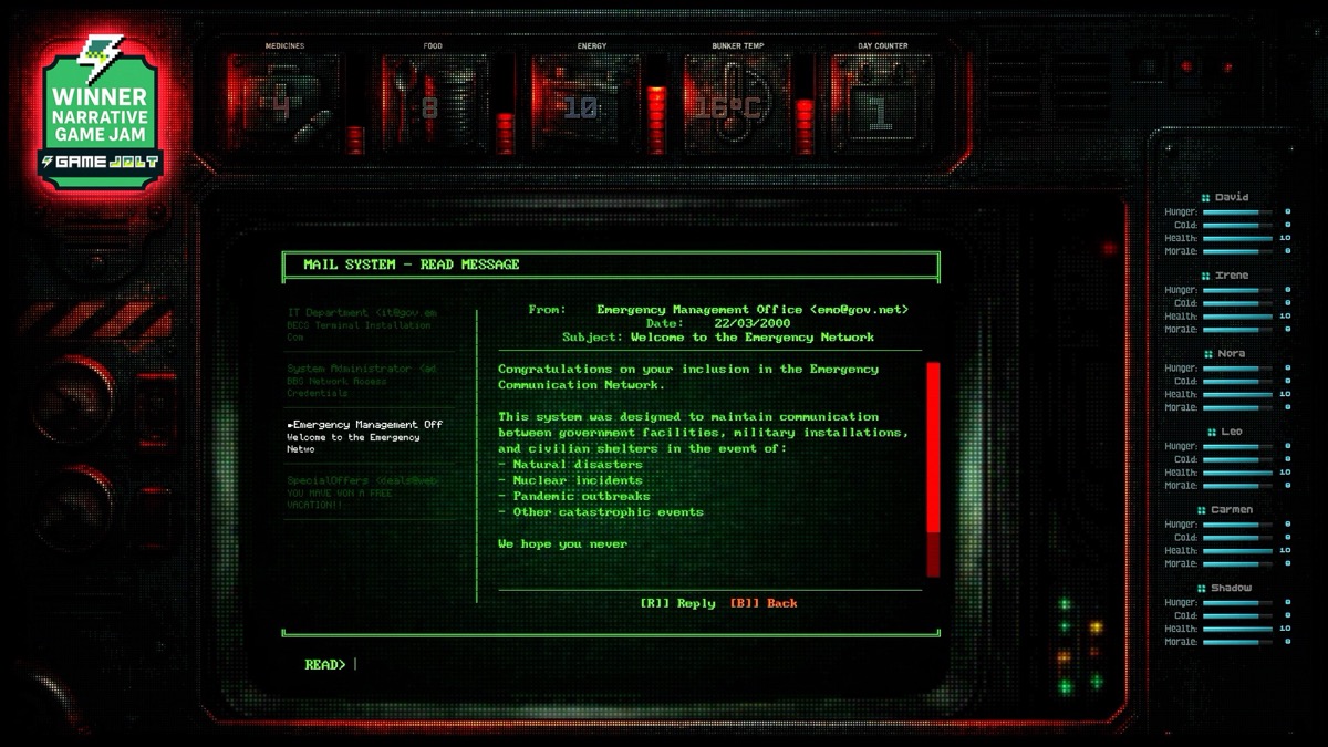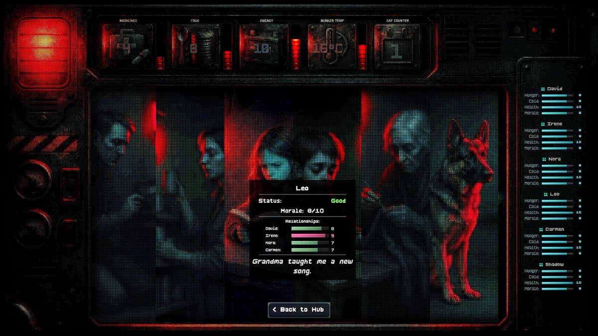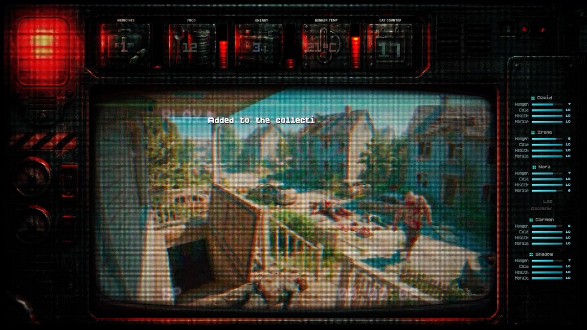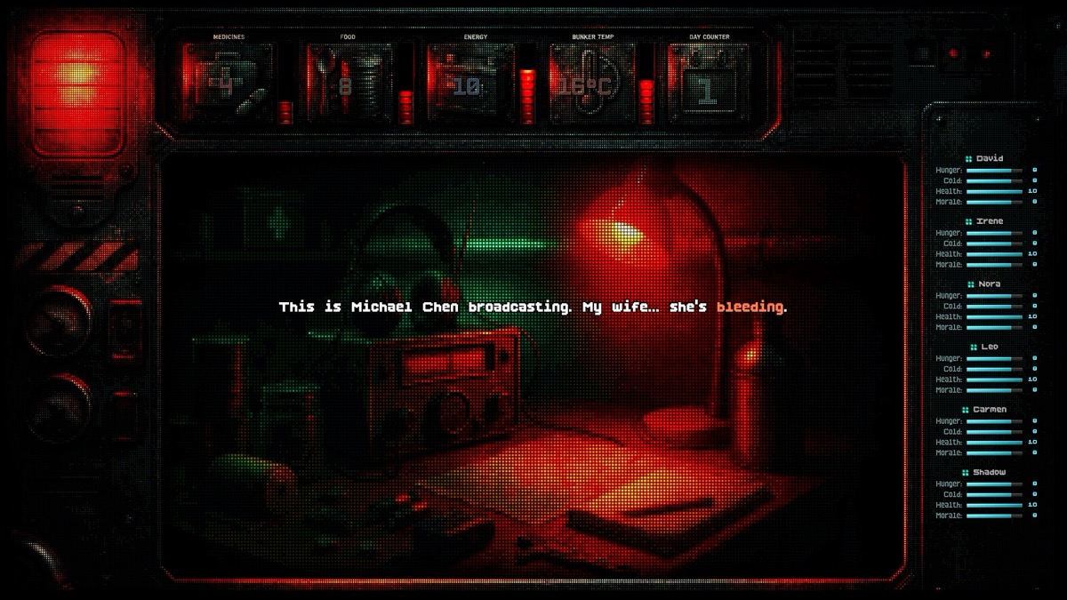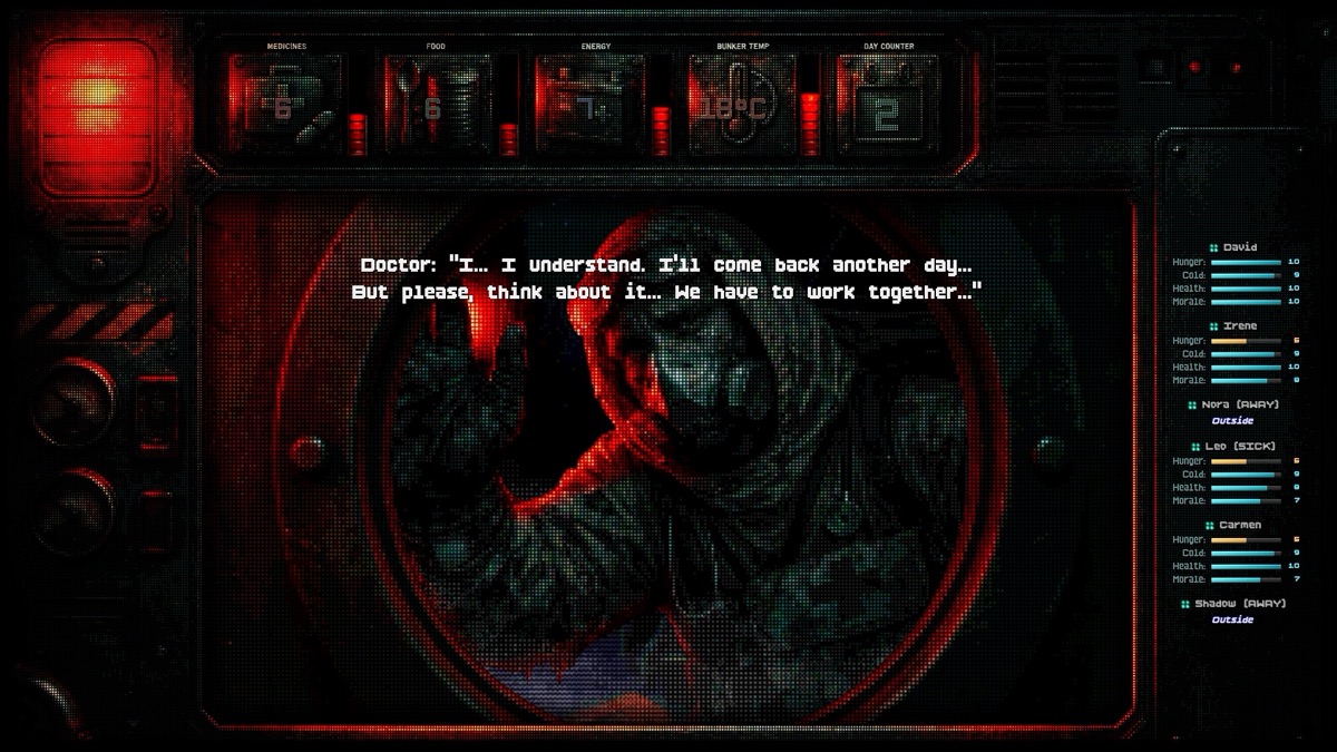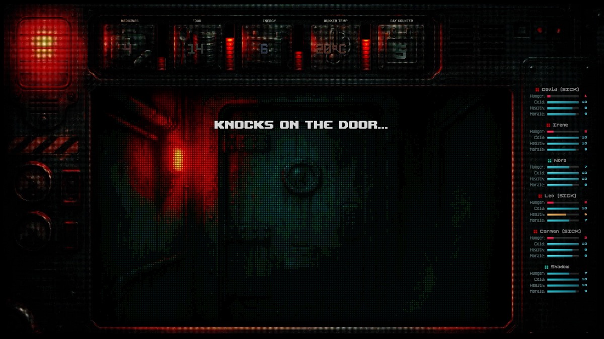When supplies run dangerously low, staying in the bunker is no longer an option. Send family members into the devastated world above to scavenge for food, medicine, and tools — but every expedition is a gamble with their lives.