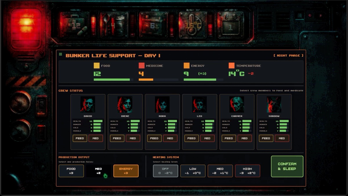 When supplies run dangerously low, staying in the bunker is no longer an option. Send family members into the devastated world above to scavenge for food, medicine, and tools — but every expedition is a gamble with their lives.